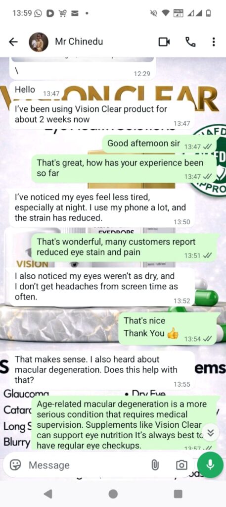 And so many eye-deteriorating problems because of how powerful the VISION CLEAR is; it is so powerful and effective that everyone that used it got instant solutions to their eye problem.